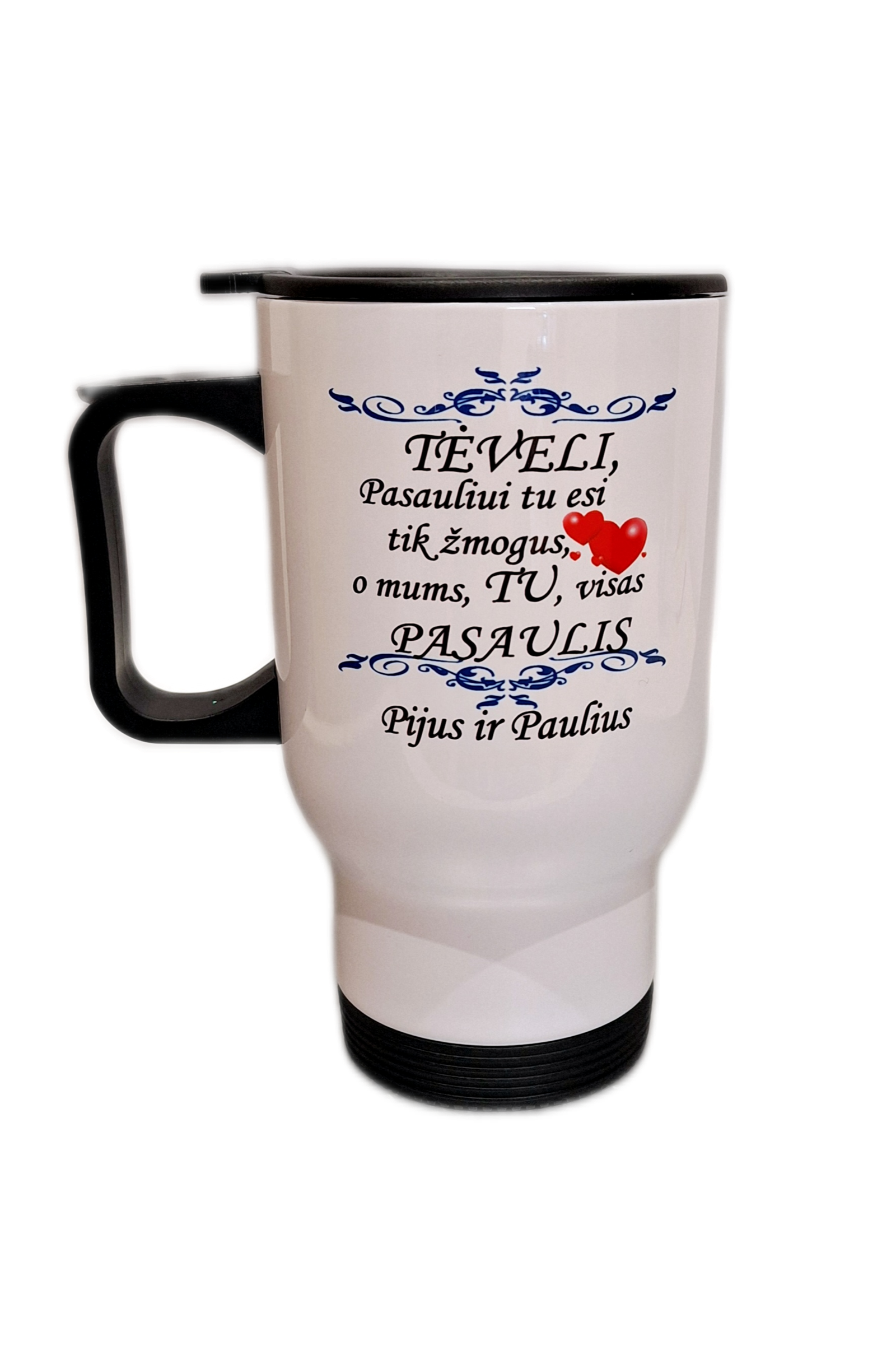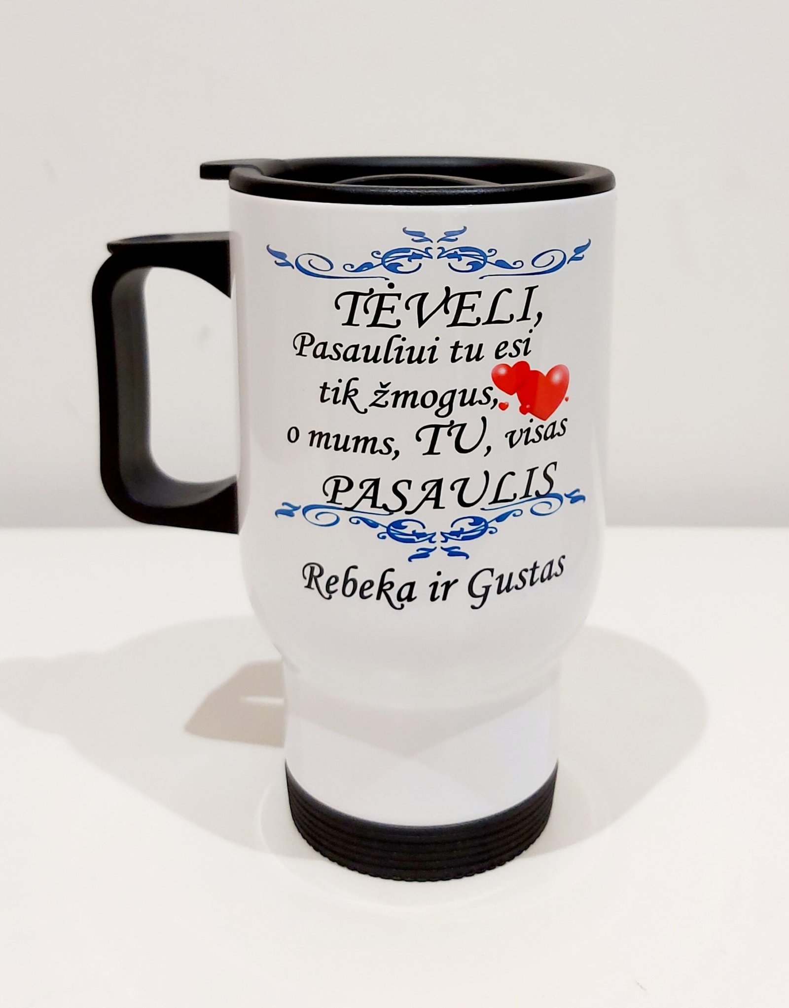 Kelioninis puodelis “Tėveli, tu mums Pasaulis (su vardais)”