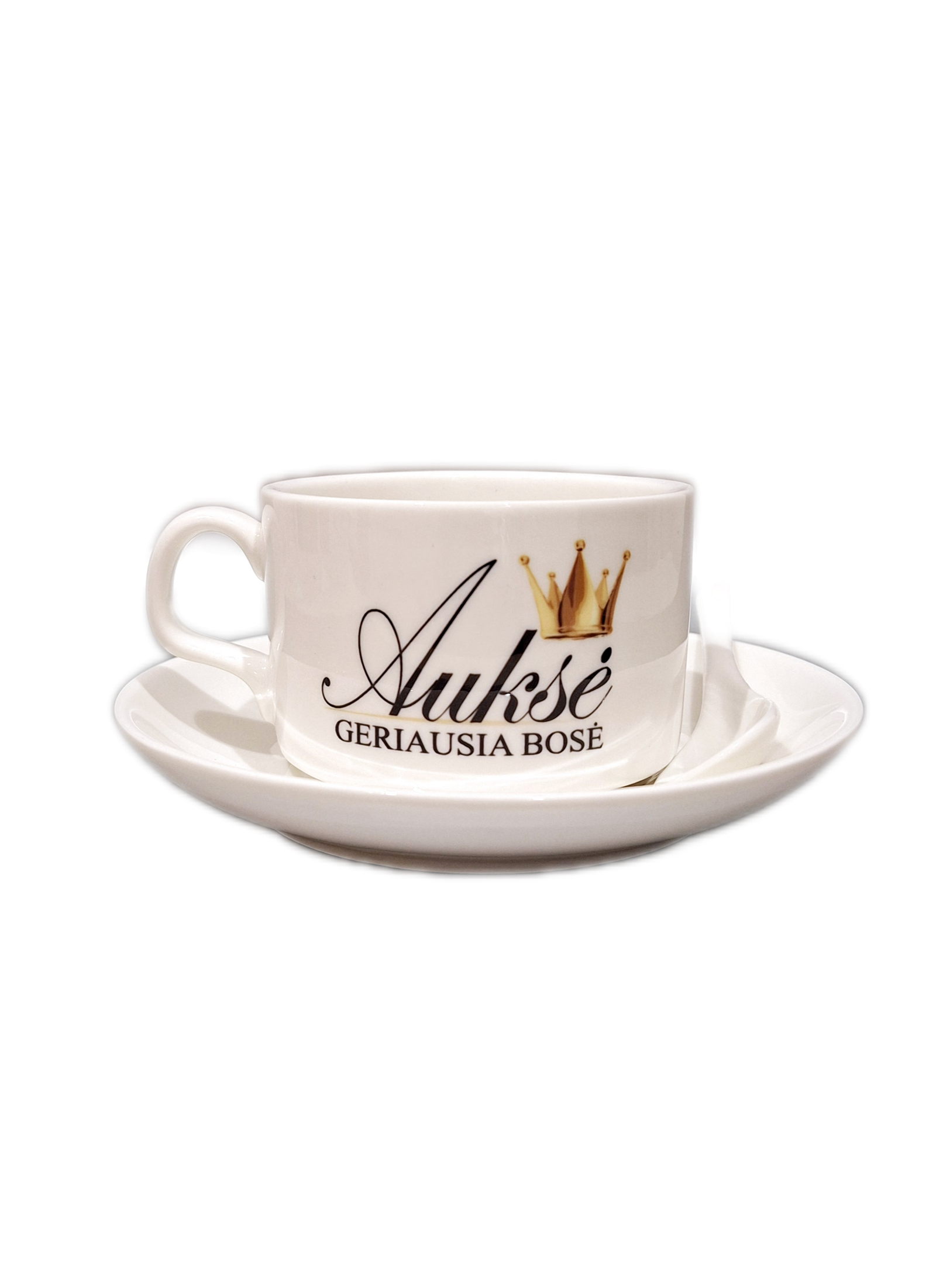 Komplektą sudaro puodelis su lėkštute ir šaukšteliu.