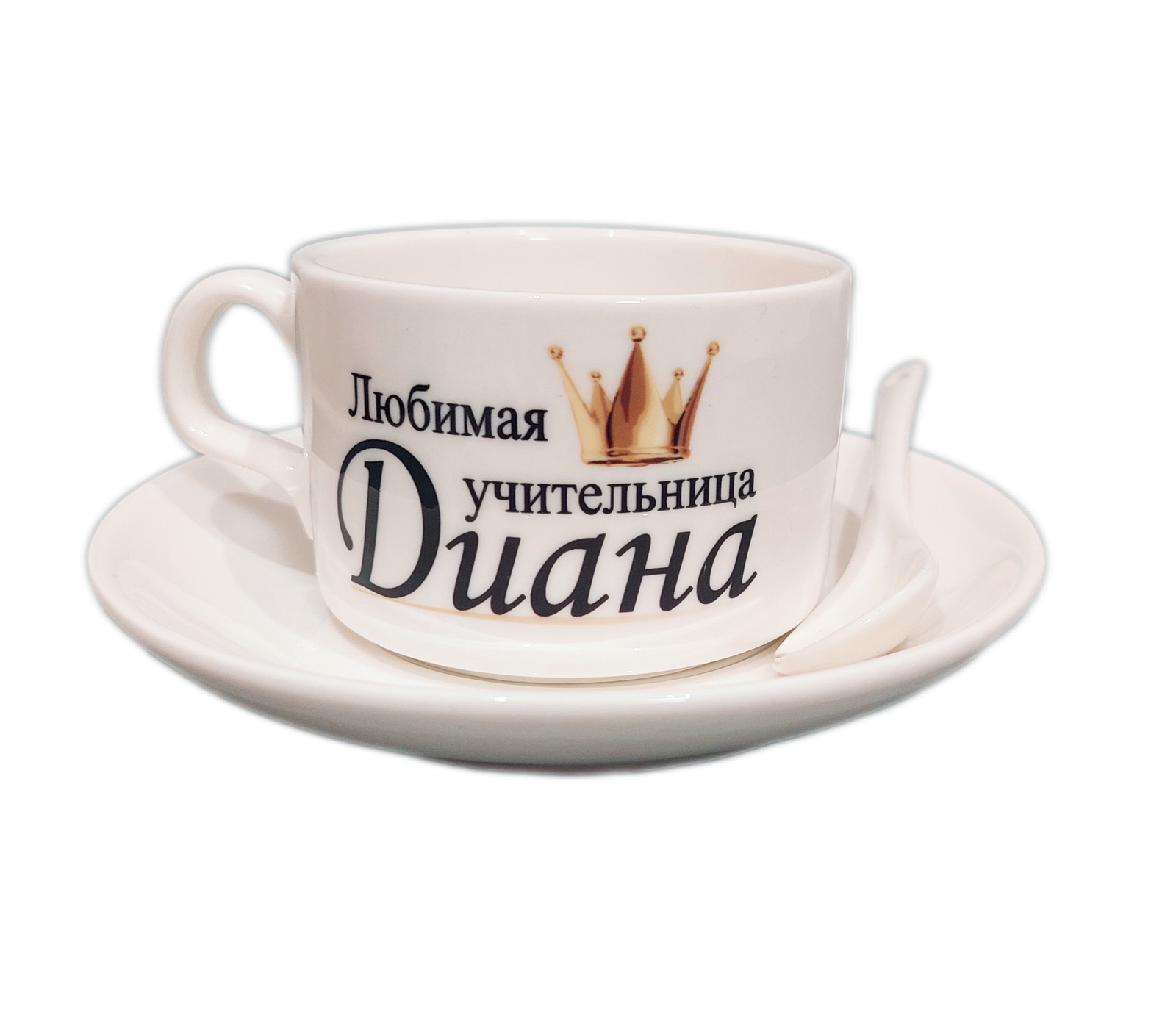 Komplektą sudaro puodelis, šaukštelis ir lėkštutė