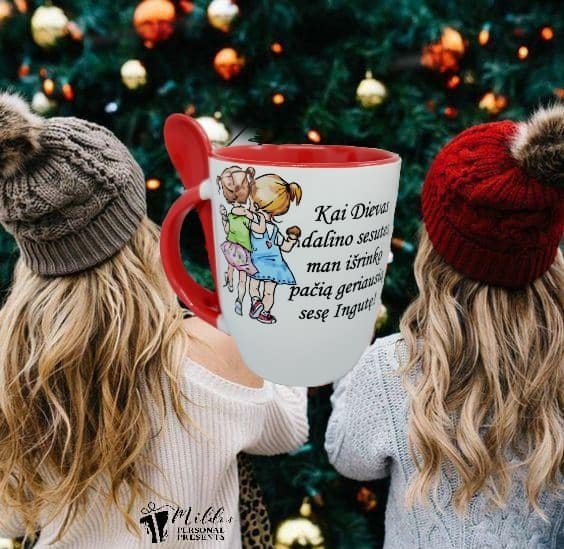 Puodelis „Dievas dalino sesutes”