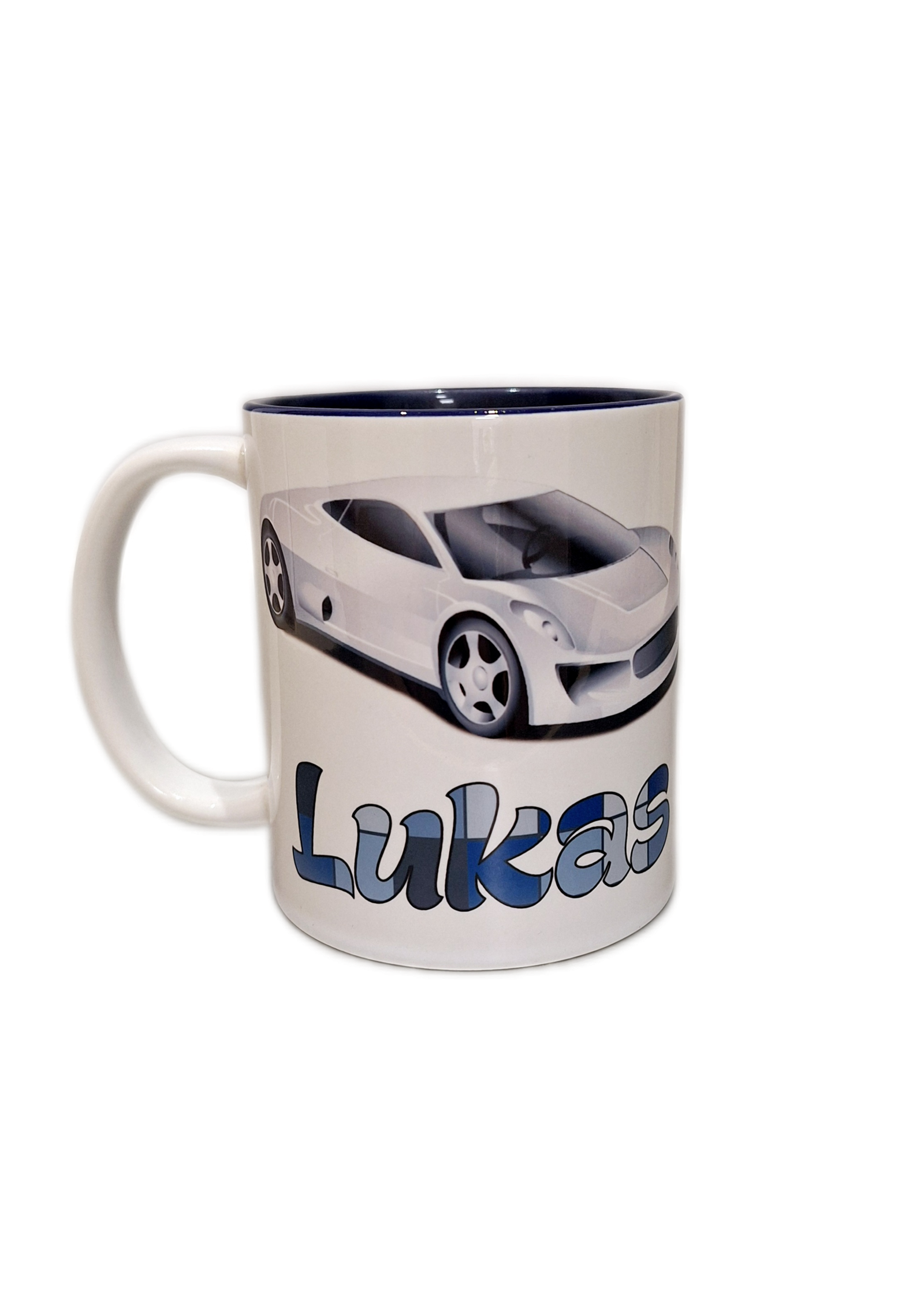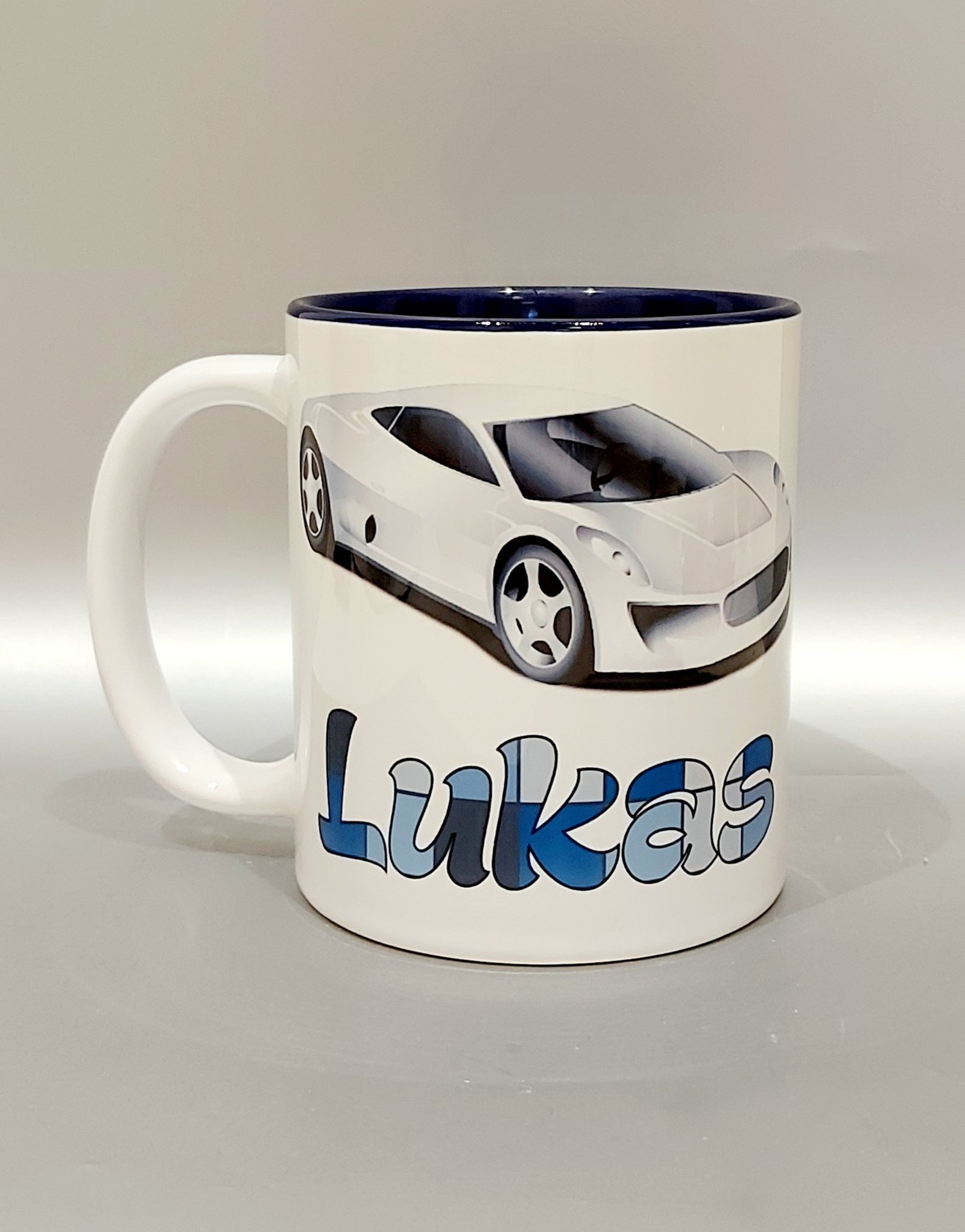 Puodelis „Vardinis (su automobiliu)”